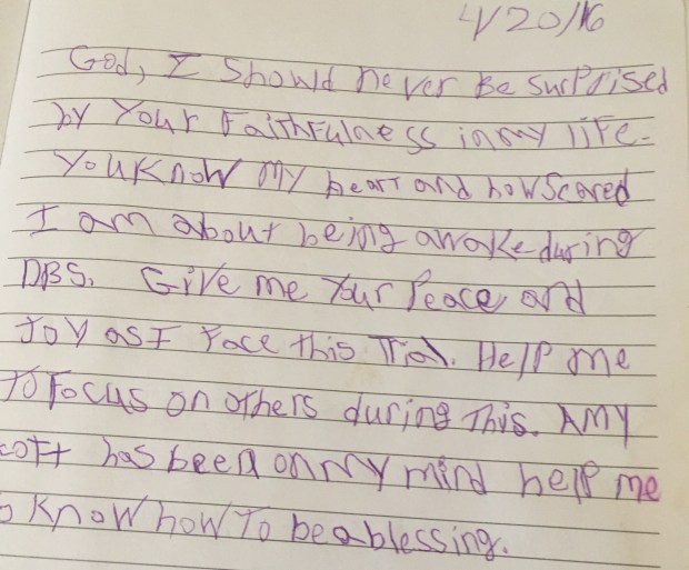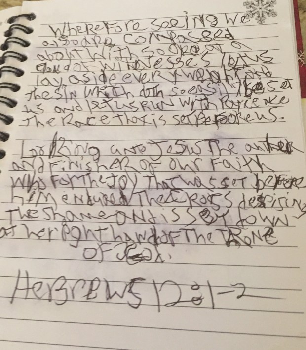 I was a teenager when I started noticing that my handwriting wasn’t like everyone else’s. So I started practicing writing at night before bedtime. I wrote Bible verses and prayers. I’m so glad I started this routine because I still do it today. I love to look back and see how the Lord has answered my prayers. The Lord is so faithful.